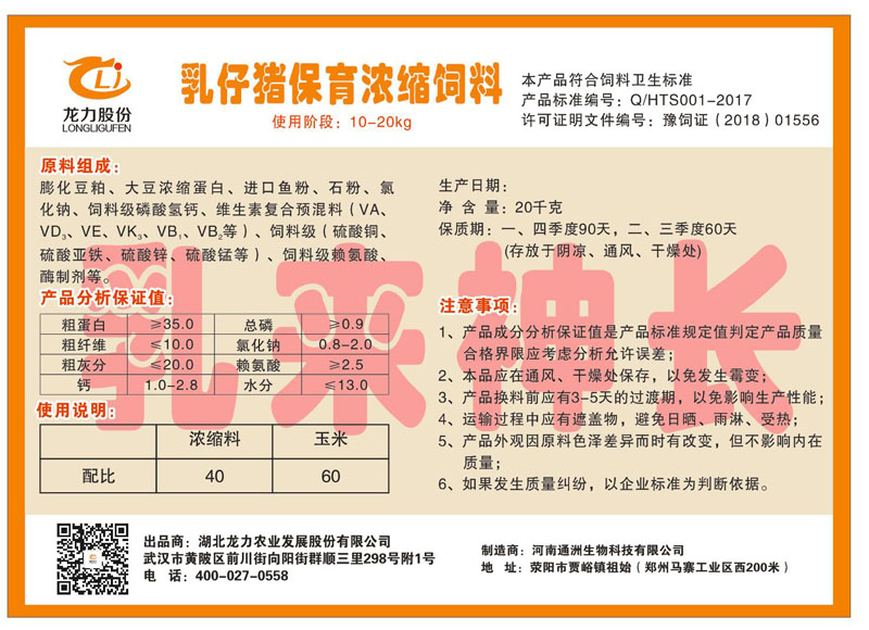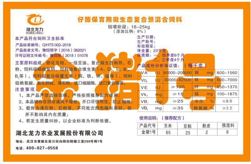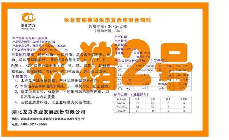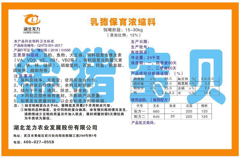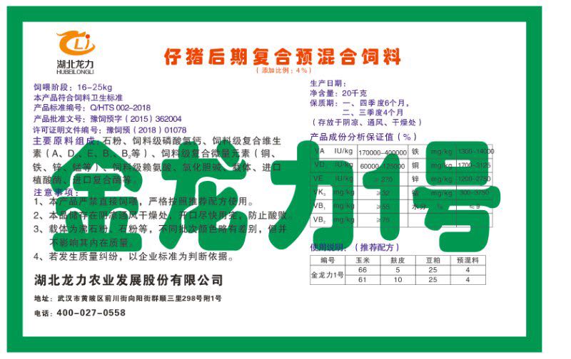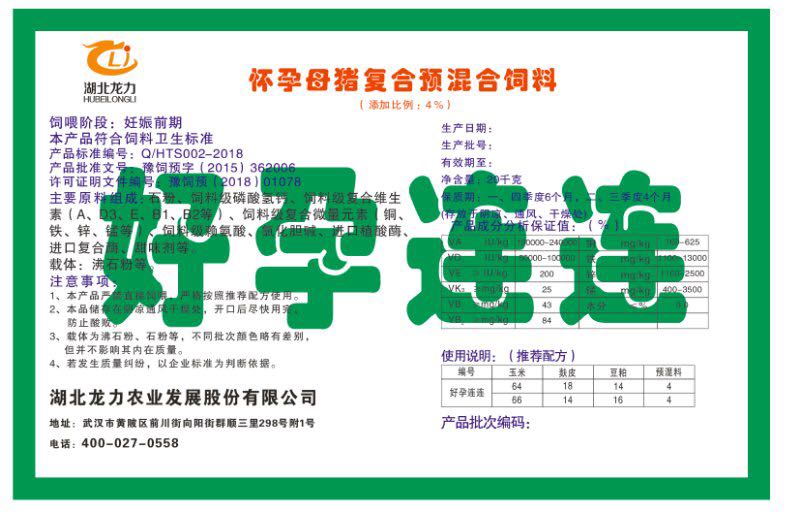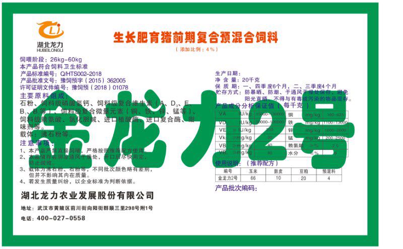湖北龍力農(nóng)業(yè)發(fā)展股份有限公司坐落于武漢市黃陂區(qū)前川街向陽(yáng)街群順三里298號(hào)附1號(hào)。公司成立于2014年6月,公司自成立以來(lái)把“創(chuàng)全球最大養(yǎng)豬綜合服務(wù)”為企業(yè)愿景。致力于打造教保料品牌”作為公司發(fā)展的明確目標(biāo)。公司一直致力于豬營(yíng)養(yǎng)的研究和開(kāi)發(fā),積極與國(guó)內(nèi)外高校和科研機(jī)構(gòu)合作,推廣養(yǎng)豬技術(shù)、動(dòng)物營(yíng)養(yǎng)新概念,向世界農(nóng)牧企業(yè)學(xué)習(xí)與合作。公司采用國(guó)內(nèi)先進(jìn)的生產(chǎn)工藝,選擇高精度電子配料秤,高均勻度、無(wú)殘留混合機(jī)等先進(jìn)設(shè)備....